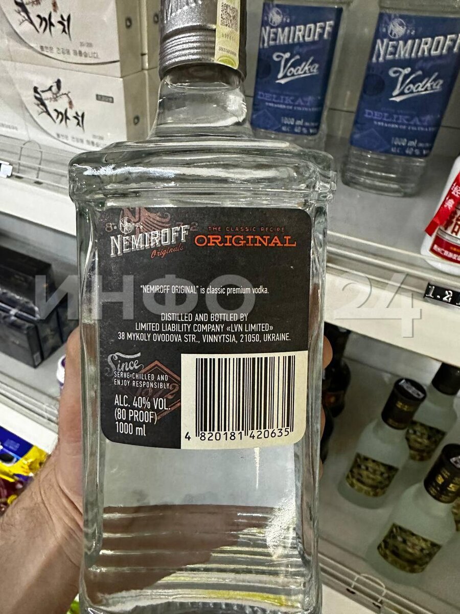 В Северной Корее обнаружили в продаже украинскую водку. Фото прислал читатель Инфо24 — водка на полке магазина в КНДР сделана в Виннице, на самом крупном заводе украинского бренда Nemiroff. В 2022 году, после отзыва производства в России, продажи Nemiroff сократились на на 57%, однако компания все еще поставляет водку в более чем 80 стран. Подписывайтесь на Инфо24 | Прислать новость