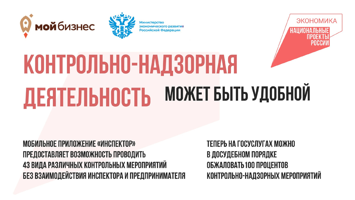 Благодаря цифровым технологиям, которые активно внедряются в деятельность контрольных органов, в настоящее время не всегда предполагается непосредственное взаимодействие инспектора и предпринимателя. Так, использование мобильного приложения «Инспектор» предоставляет возможность проводить 43 вида контрольных мероприятий, например, пожарный надзор, стройнадзор, технадзор, здравнадзор и так далее.