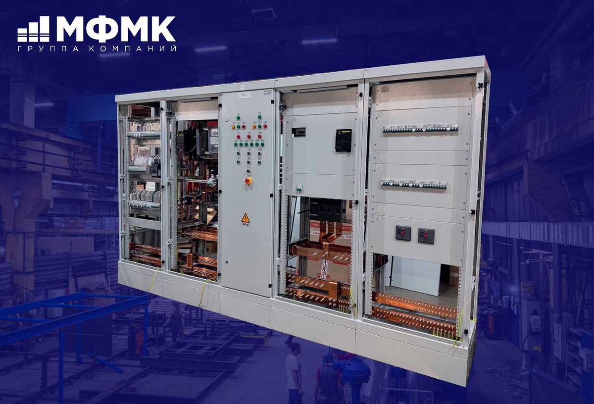 Решение: Произведен главный распределительный щит с вводными рубильниками номиналом 1000А. В составе 5 секций с общим габаритом (ВхШхГ)
