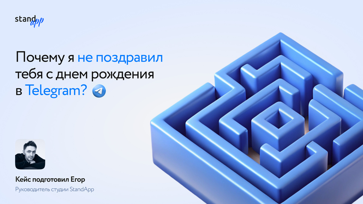Привет, это StandApp. Мы помогаем SaaS-продуктам расти через UX/UI-дизайн. Без фрилансеров и найма в штат — просто передавая дизайн-поддержку на аутсорс. ☝️ Эту статью вы можете прочитать на нашем сайте и на vc.ru Кейс подготовил Егор — руководитель студии StandApp. Егор: как часто вы видите уведомления от Telegram о том, что у кого-то из ваших контактов сегодня день рождения? Вероятно, регулярно. И как часто, нажимая на это уведомление, вы ожидаете сразу попасть в чат с именинником, чтобы его поздравить? Ожидание: открываю уведомление → попадаю в чат с именинником → пишу поздравление → если есть желание, то отправляю подарок от Telegram. Реальность: открываю уведомление по синей ссылке → попадаю на экран с платными подарками и стикерами → возвращаюсь к экрану, где я видел уведомление → … → пытаюсь нажать на небольшую аватарку именинника, чтобы попасть в чат с ним → снова оказываюсь на экране с подарками → возвращаюсь назад и через «Поиск» нахожу именинника, чтобы поздравить его. Я пол