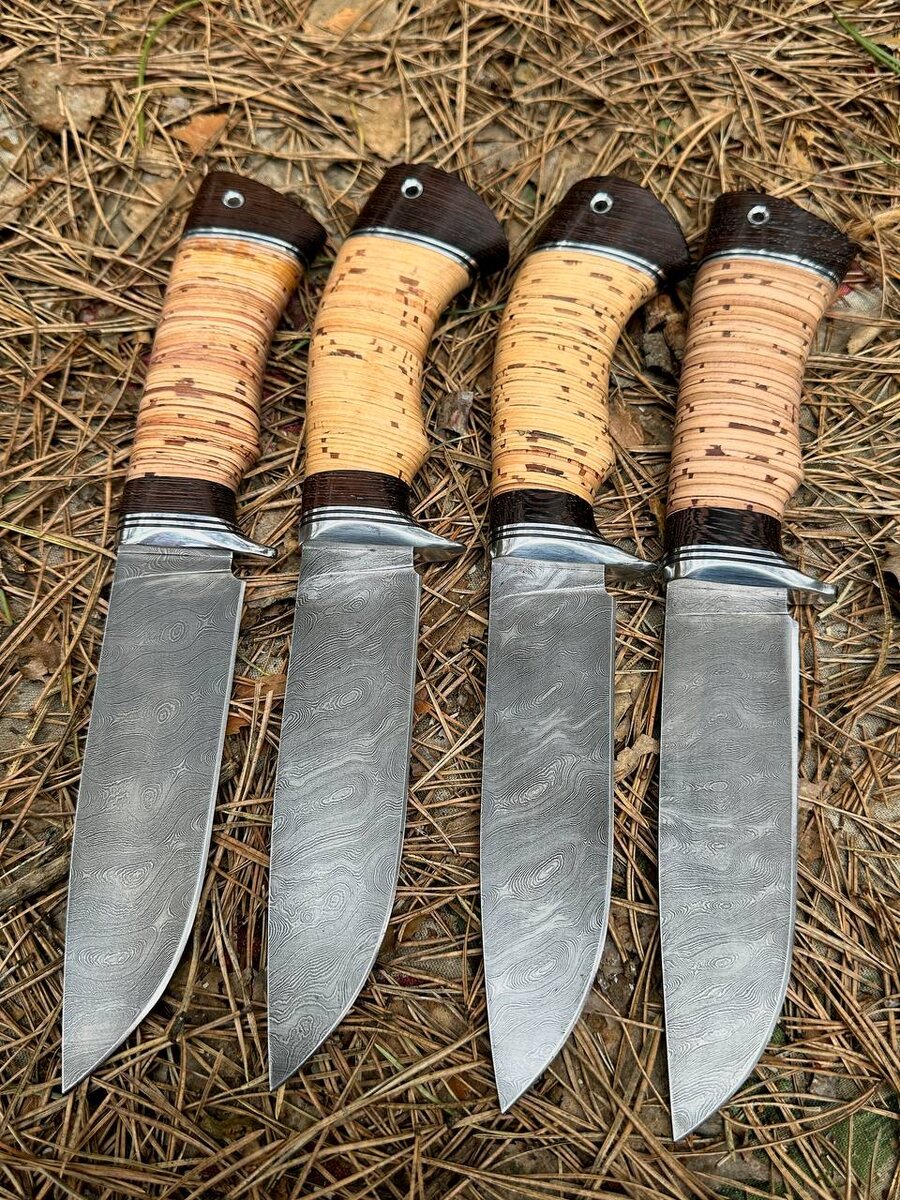 Готовы четыре красивых рабочих ножа «Нептун» из дамасской стали в 950 слоев. Полные спуски от обуха для лучшего реза без сопротивления. Рукоять на ножах теплая из бересты, не скользит в руке и не боится влаги. Нож режет как бритва. Твердость клинка (HRC): 62 Цена за один нож: 10.040 рублей, со скидкой: 8.032 рубля. В комплекте идут ножны из натуральной кожи. Можем сделать формованные ножны +8000 рублей. Для заказа писать на @Nazarklinokbot или по тел +79101343831 WhatsApp/Viber