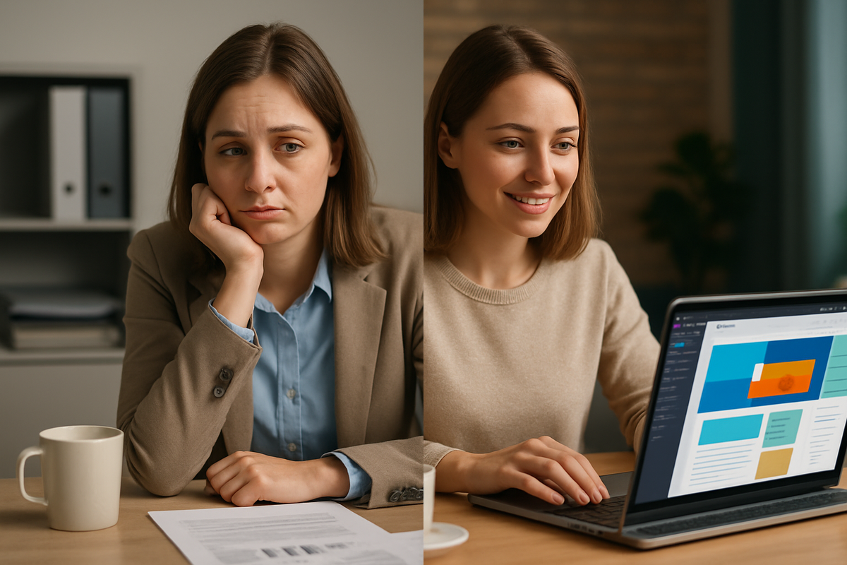 Я действительно чувствовала себя застрявшей на нелюбимой работе, годы в офисе привели лишь к полному выгоранию и ощущению тупика. Тогда и пришло осознание, что пора кардинально менять жизнь, и выбор пал на новую, современную профессию — веб-дизайнера. Правда, я быстро поняла, что начинать придется буквально "с нуля", ведь у меня совсем не было никаких навыков ни в дизайне, ни в IT. К тому же, честно говоря, возник страх: а реально ли вообще освоить такое в моем возрасте? Но сильное желание работать удаленно и стать востребованным специалистом заставило искать решение, и я поняла, что учиться онлайн – мой единственный шанс.