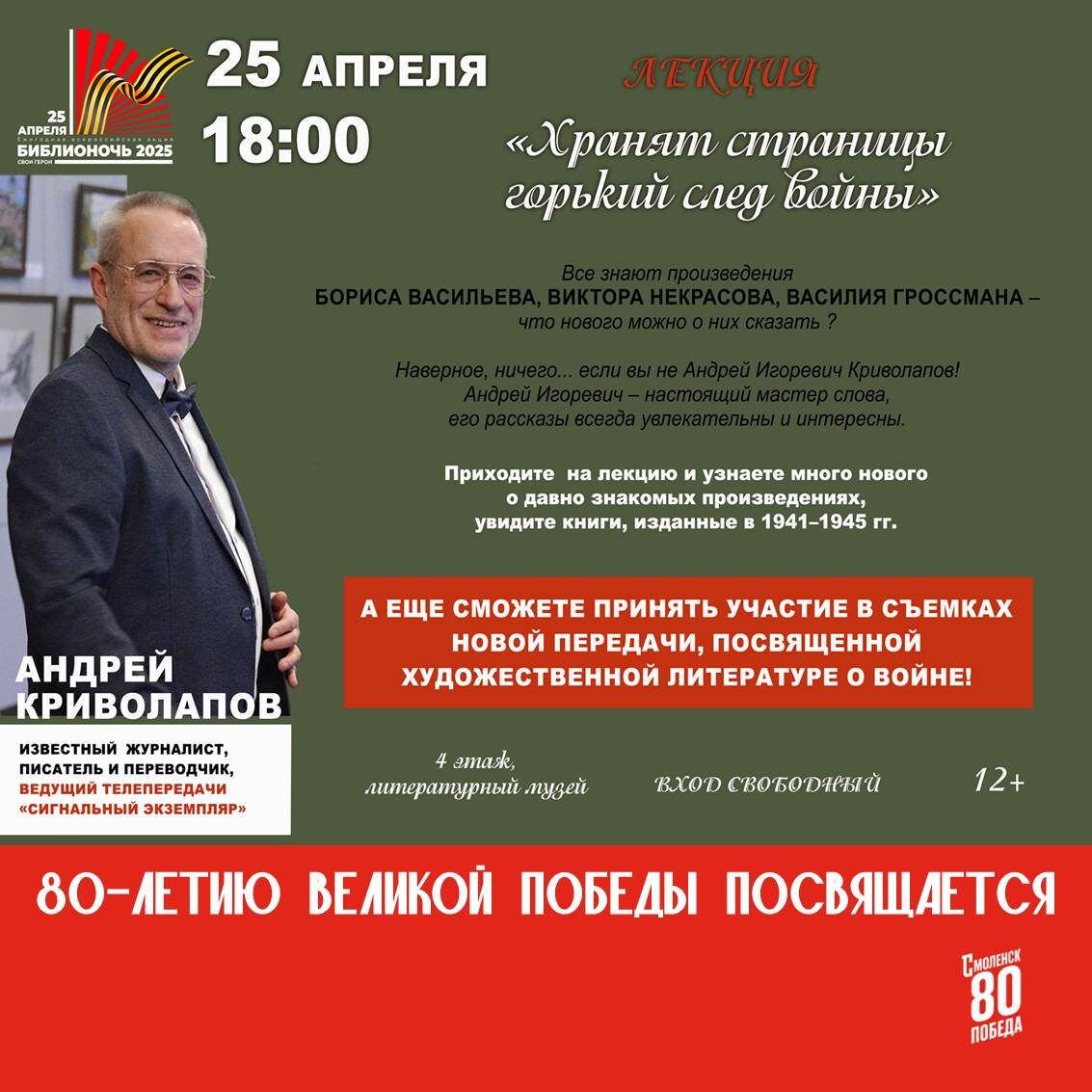 Известный журналист, писатель Андрей Криволапов расскажет много интересного о произведениях Бориса Васильева, Виктора Некрасова, Василия Гроссмана.