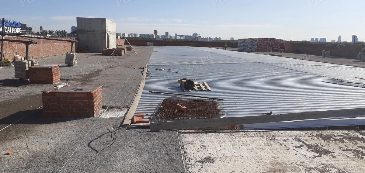 Кровельщики РСК-24 устроили плоскую крышу с площадью поверхности по горизонтали 9 042 м2.