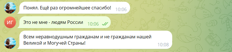 Решил дать отчет не в виде поста, а в виде статьи. Уже есть ряд подтверждающих документов. Так будет нагляднее. Докладываю. Отметки в 1 000 000 рублей в этот раз мы достигли в 12:50 час. по Москве. Очень уверенным шагом идем, друзья! Спасибо за перекличку в комментариях. Всё вижу, всё читаю. Но, главное, это видят многие солдаты и офицеры, которые читают блог. Вот от офицера 236-й гвардейской артиллерийской бригады: Вообще, сегодня у нас на канале день артиллериста) Шутка. Просто так получилось, что первые заказы, которые закрыл - это заказы артиллеристов. Заявка 236-й гвардейской артиллерийской бригады закрыта полностью. Это 4 генератора, три дрели, ноутбук, две болгарки, два набора антенн и два выноса с антеннами. Всего на сумму 400 746 руб. Все уже в сборке и скоро будет доставлено ребятам. Уточняю, все заявки исполнял строго по ссылкам от офицеров бригады. Вот чеки: Артиллеристам гвардейцам из 9-й бригады заказаны мощные генератор и домкрат. Увы, там где они находятся не нашло
