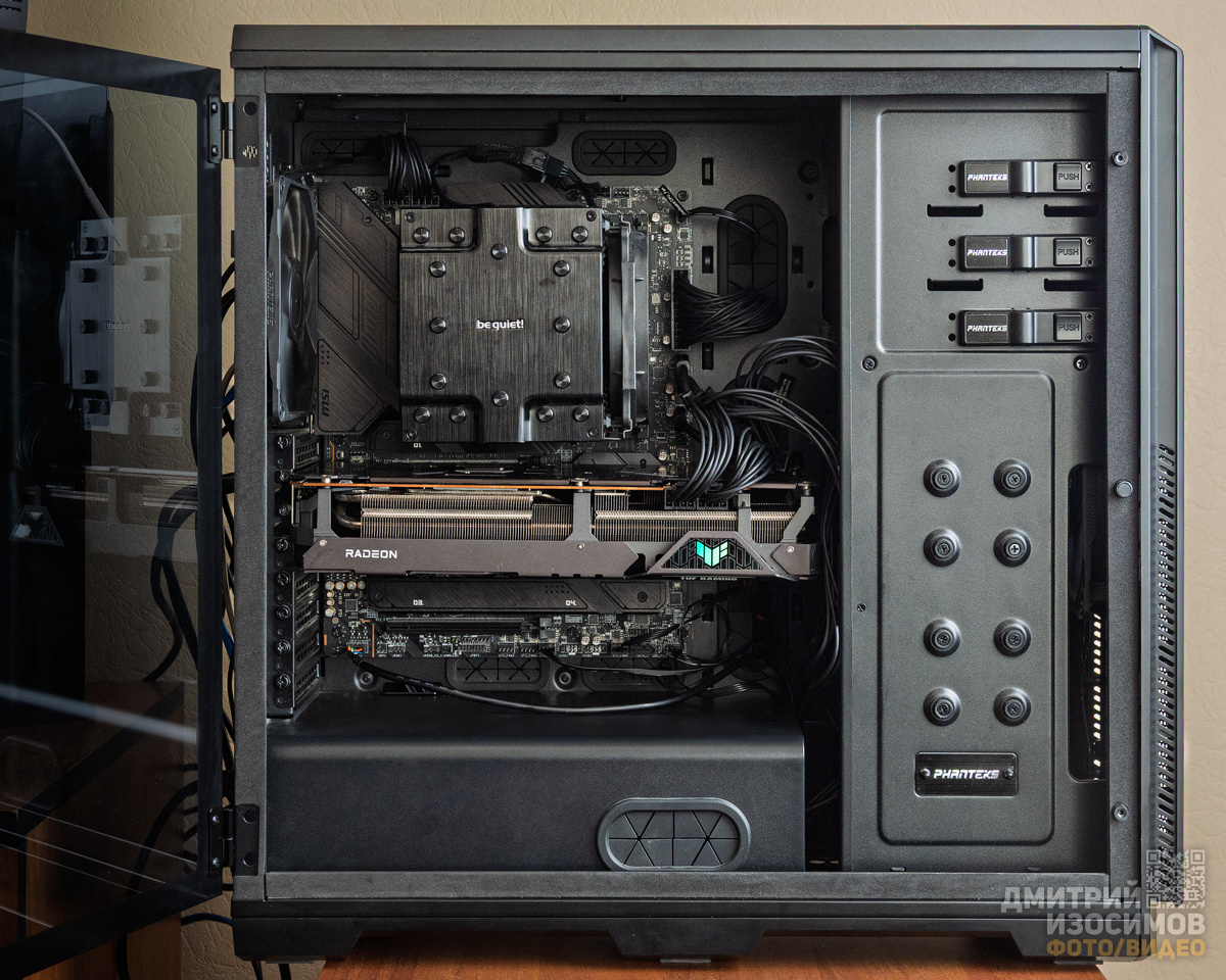 Финальная сборка Томагавка 2025. Состав: Да, пытливый технодрочер немедленно упрекнёт в неряшливом кабель-менеджменте. Да и видюху было бы неплохо поддомкратить телескопической распоркой (уже заказана) с резиновыми уплотнителями — тяжёлая как сволочь, провисает на миллиметр в самой незащищённой части. Да, жирный Apple Mac Studio выглядел бы изящнее и нативнее. Но это, во-первых, чуть медленнее в части GPU и чуть быстрее в части CPU. А во-вторых, это почти 450К рублей (не считая коробки NAS для всех HDD), когда вопрос надо было решить за пару дней в Тюмени. Ну и самый ничтожный резон «в-третьих»: на Студии не запустить второго Сталкера и грядущих Дума с ГТА6 так, чтобы всё невесомо работало в 4K со всеми возможными лучами. Я вспомнил рассказ молодого тюменского предпринимателя с нормальным комбо «борзота+жадность», который в деталях описал, как в 30 лет купил себе новый Порш Кайен в салоне. Радость и эпический кайф с его слов длились пару дней, нисходя к концу первой недели. Или рассказ