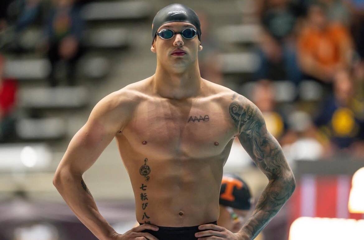 Guilherme Caribe Santos учащийся в университете Tennessee 🟠 , бразильский напарник Jordan Crooks по тренировкам и эстафете, показал первый