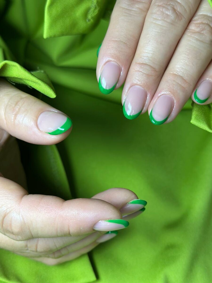 🥰🥳😀☺️😶🌫️➡️😶🥳 Мой любимый френч 💚 Сегодня без цветочков, но все же с ярким дизайном. Масштаб работы: ✅Выполнили комбинированный маникюр; ‼️Много времени затратила на обработку кутикулы. Весна - это не только цветы, солнышко, прогулки, но и тяжелые земляные работы. Поэтому, мои дорогие, обязательно увлажняйте ручки и зону кутикулы. ✅Укрепили ноготки гелем; ✅Нарисовали френч.