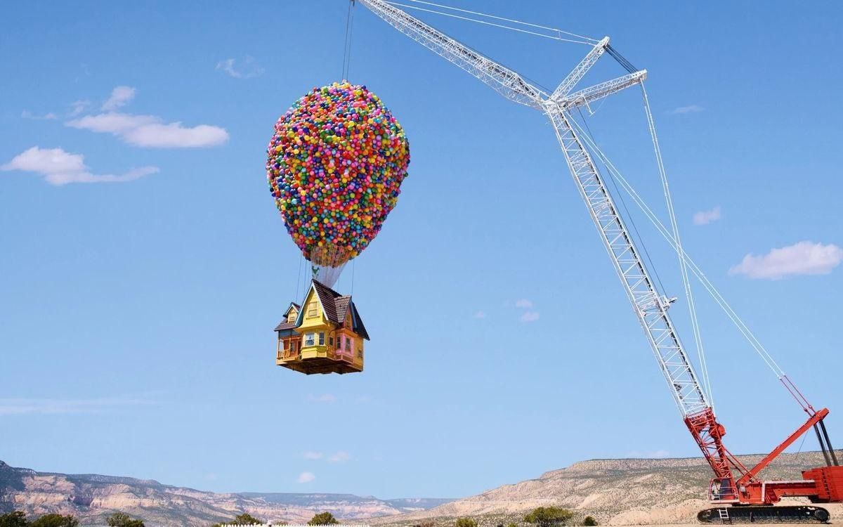 Полет дома на воздушных шарах, как в мультфильме «Вверх», попробовали повторить экспериментаторы с телеканала National Geographic. Облегченную версию дома смогли поднять 300 воздушных шаров размером 2,4 метра. В ходе эксперимента была построена облегчённая копия дома размером 16×16 футов (около 5×5 метров), которую подняли в воздух с помощью 300 метеорологических шаров, наполненных гелием. Дом достиг высоты более 10 000 футов (примерно 3 километра) и находился в воздухе около часа. Этот полёт установил мировой рекорд по «самому большому полёту с кластером шаров».