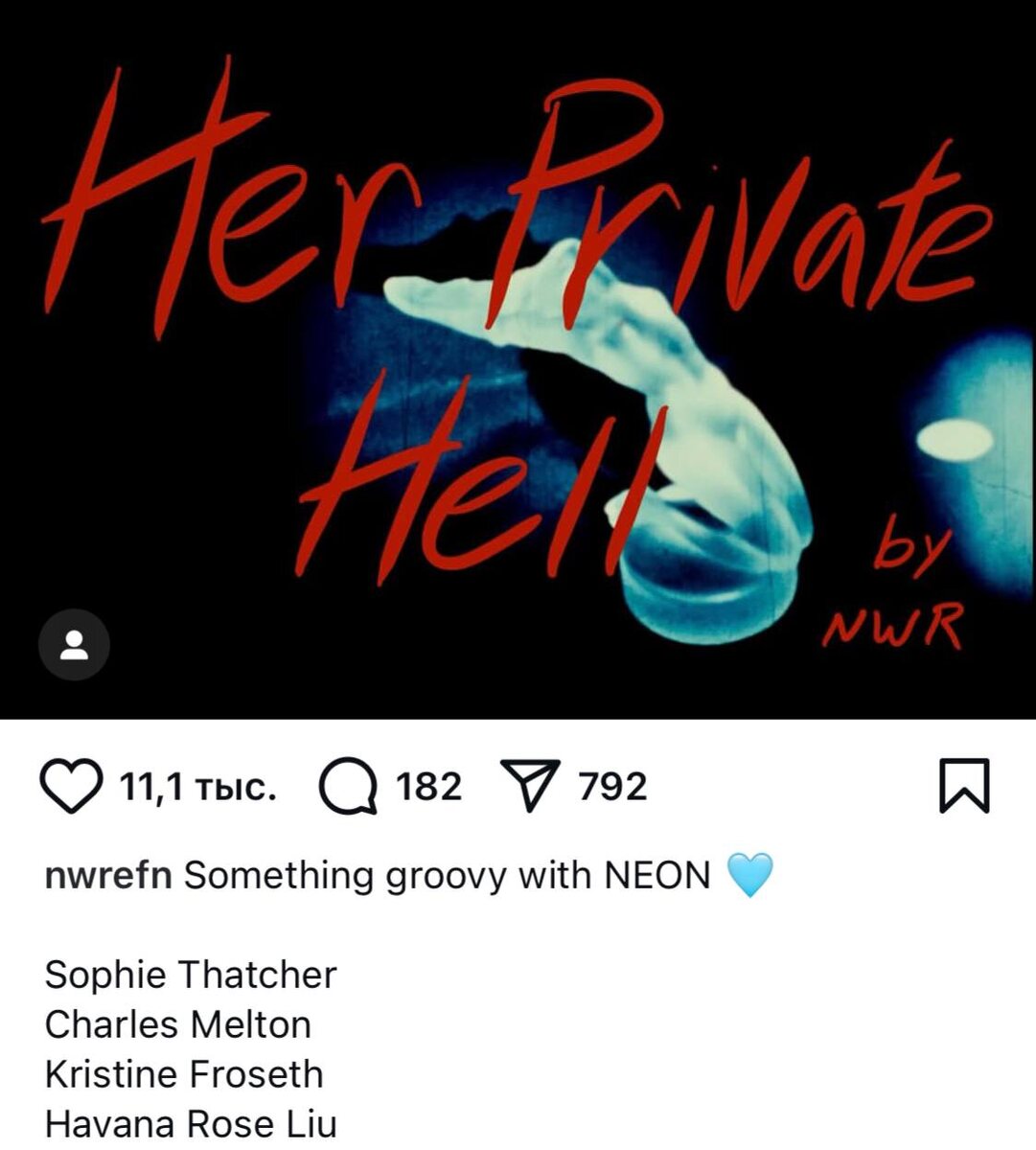 Вместо официального анонса фильма Avenging Silence, о котором сообщали в прошлом году (и ходили слухи, что он войдет в программу Канн), режиссер затизерил нечто иное: картину под названием Her Private Hell с актерским составом в лице Чарльза Мелтона, Софи Тетчер, Кристин Фросет и Гаваны Роуз Лю.