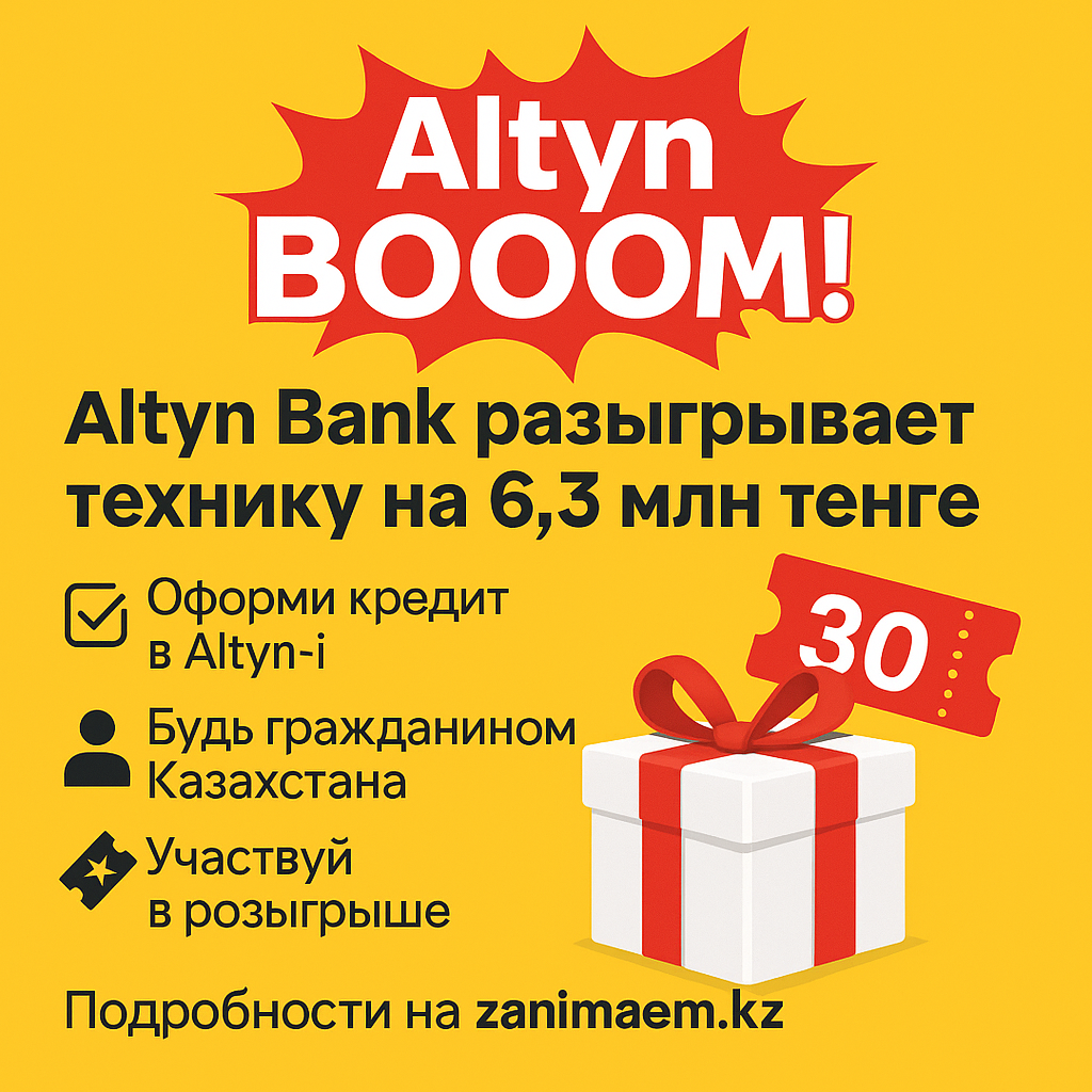 Altyn BOOOM! Altyn Bank разыгрывает технику на 6,3 млн тенге среди клиентов с оформленным кредитом