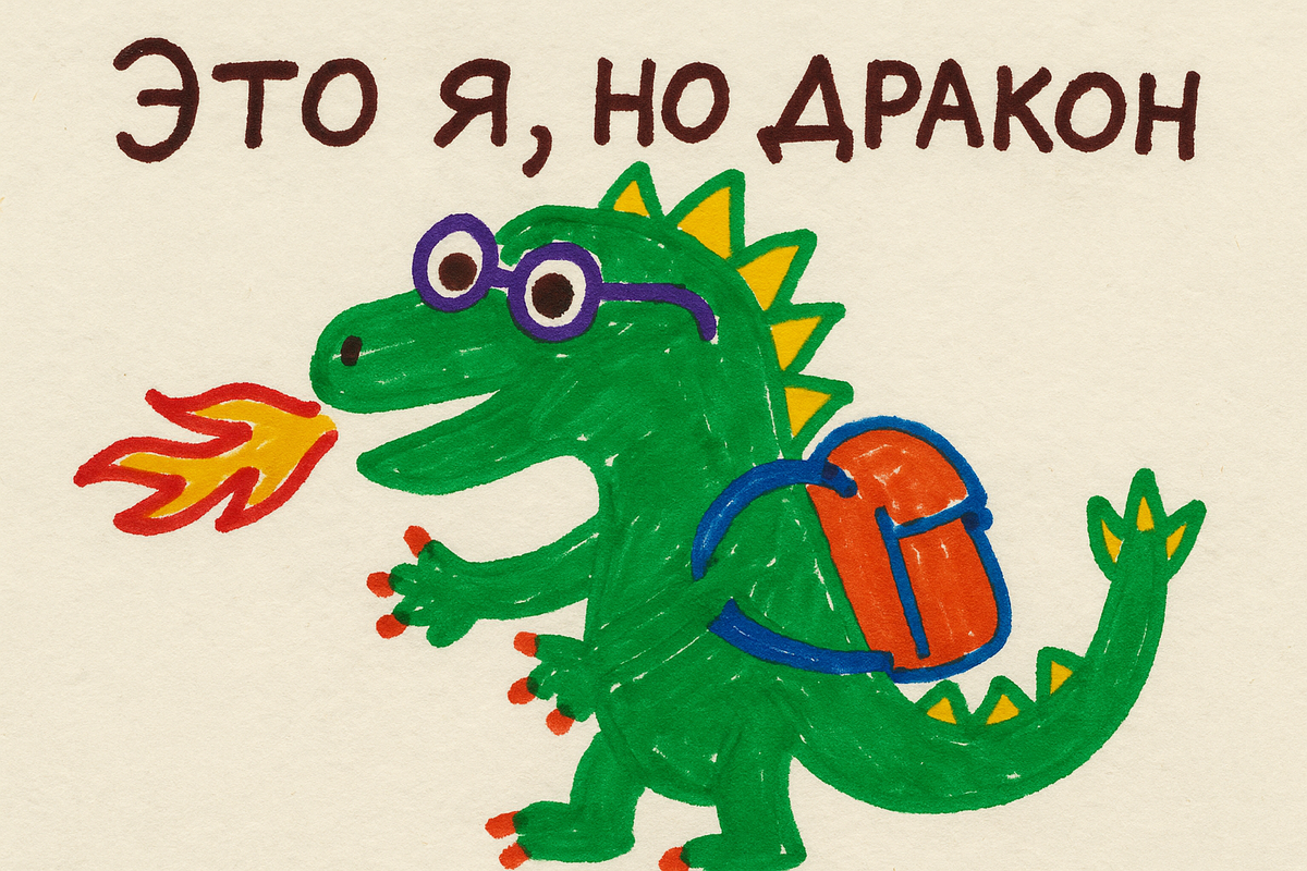 «Это я, но дракон». Матвей никогда не сомневался в этом. Он рассказывал о своей прошлой жизни с такой уверенностью, что Валентина не могла не поверить. Он был не просто драконом, а культурным драконом: ходил в школу, ел кашу, учил уроки и летал только по выходным, чтобы не мешать соседям. У него были свои правила, свои друзья и свой особый мир, в котором всё было возможно. Валентина захотела сделать этот мир видимым: — Я хочу, чтобы вы нарисовали его таким, каким он его помнит, — написала она художнику. — Пусть будет видно, что это не просто фантазия, а настоящее воспоминание. Арт-дизайнер создал волшебную иллюстрацию: Матвей — маленький зелёный дракон в очках, с рюкзаком, полным учебников. Он идёт в школу — на заднем фоне двор, и даже мама машет с балкона. А в небе — солнечные лучи и стая бумажных самолётиков