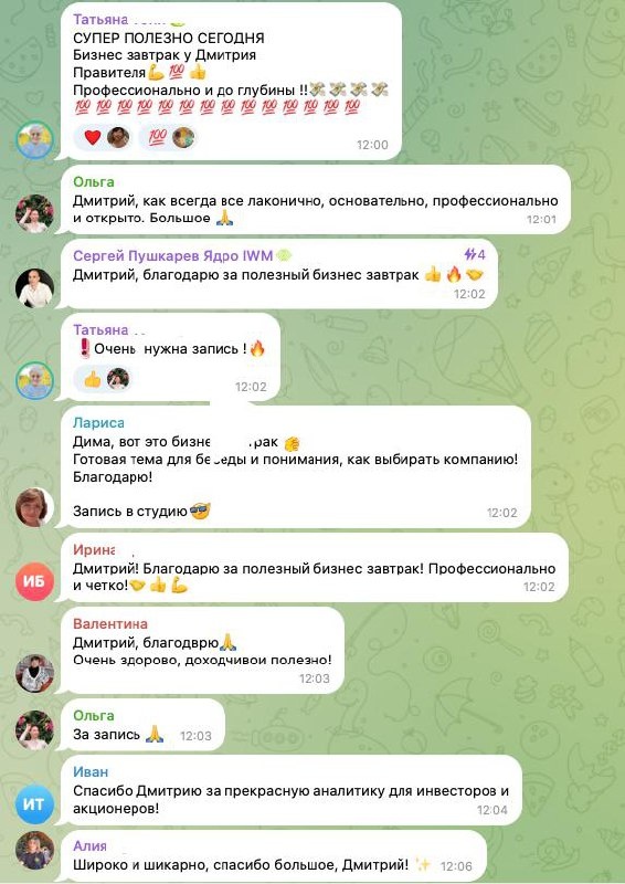 💬 Водопад отзывов после бизнес завтрака, который сегодня для нас провел Дмитрий Правитель