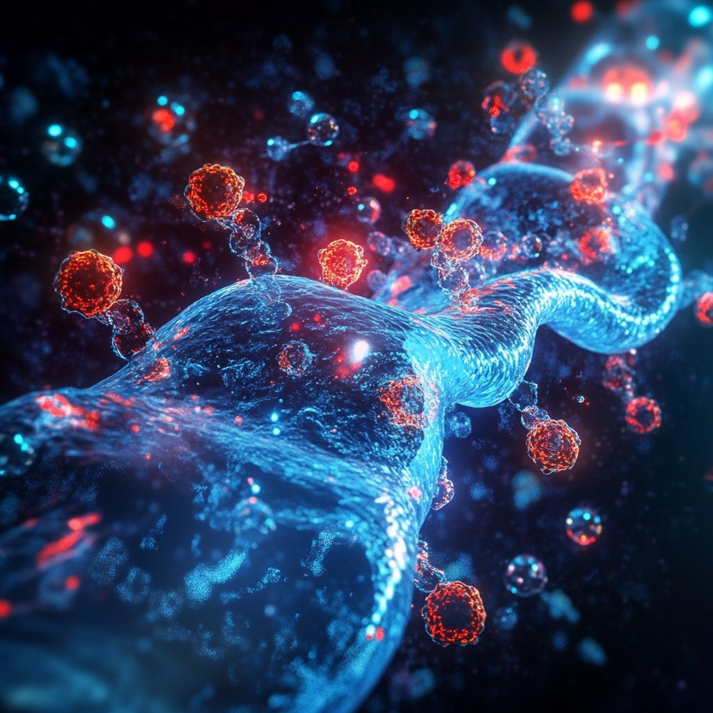 Создано на основе запроса: A high-resolution, science-themed 3D medical illustration showing potassium ions (K+) pushing sodium ions (Na+) out of the body at the cellular level. Potassium is glowing blue and smooth, sodium is glowing red and jagged. Background features a dynamic double helix DNA strand and cellular membranes with water molecules moving. Visualize puffiness reduction with shrinking cell outlines. Deep blue and red color palette, clean and futuristic biotech aesthetic, microscopic view with glowing effects, highly detailed particles floating in space. Inspired by genetics, hydration balance, and anti-inflammation science visuals. --- Автоперевод: 3D-медицинская иллюстрация с высоким разрешением в науке, показывающая ионы калия (K+), выталкивающие ионы натрия (Na+) из организма на клеточном уровне. Хорошо выглядит? 🤔 https://dzen.ru/id/65c0c65c86e4f837c27b24d7 #ИИ #AI #нейросеть #midjourney #art