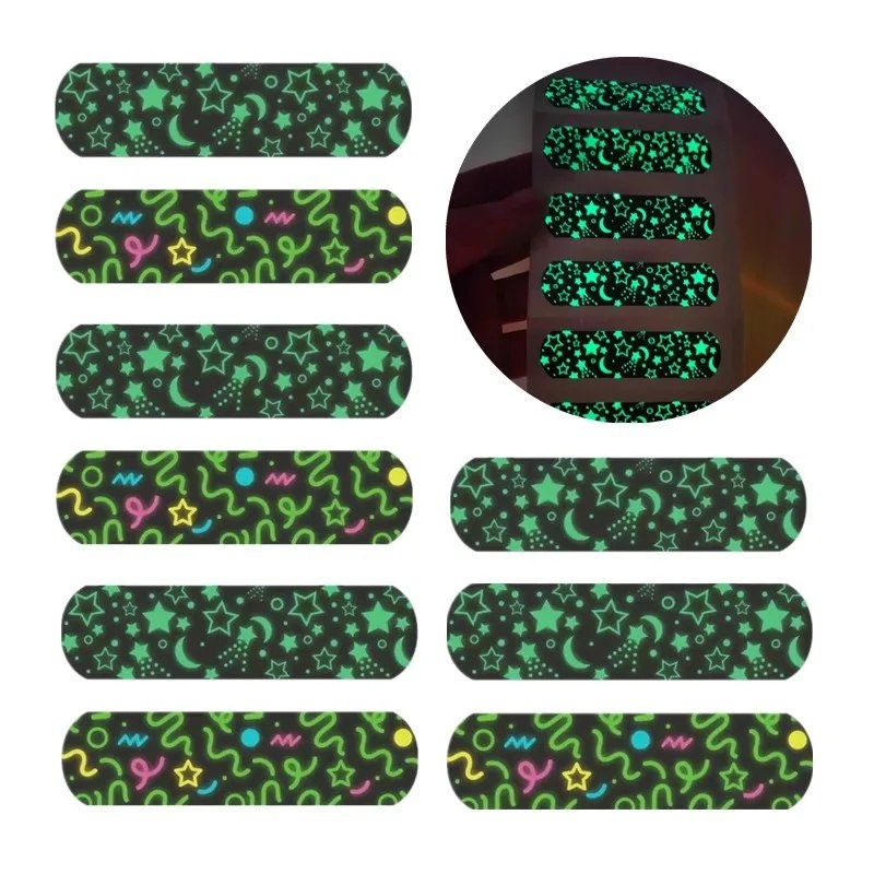 10 шт./компл., светящийся пластырь с героями мультфильмов, 72x19 мм, серебристый пластырь для перевязки на рану, полоски, светящиеся клейкие
