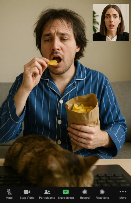 Удобно, быстро, не надо никуда ехать. Но вместо рубашки и галстука — пижама, вместо офиса — кухня с холодильником на фоне или вообще бабушкин ковер. Собеседования изменились и не всегда в лучшую сторону. Один заходит в кадр с котом на клавиатуре и хрустит чипсами, другой отвечает на вопросы и параллельно скроллит TikTok. Формат расслабляет, но напрочь стирает рамки деловой коммуникации. Мой личный топ — когда кандидат заходит без камеры и говорит: «Мне так комфортнее, лучше формулирую мысли». Комфортно — возможно, но тогда лучше вообще бы не заходил) Я же не просто слушаю голос, а хочу понять, кто передо мной: как он реагирует на вопросы и вообще как выглядит. А тут получается монолог в пустоту. Чтобы не угадывать по резюме и пересказу рекрутера, я предложила коллеге: «Давай начнем записывать встречи на видео». Прямо в Google Meet (с разрешения, конечно) — перед началом встречи кандидат получ