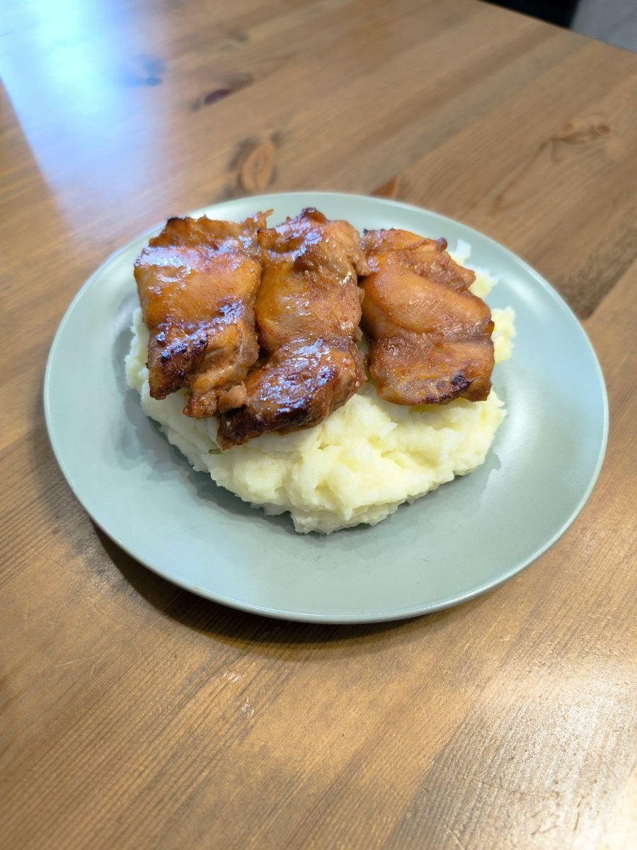 1) Для маринада смешать соевый соус, кетчуп, масло, мёд, лимонный сок и специи.