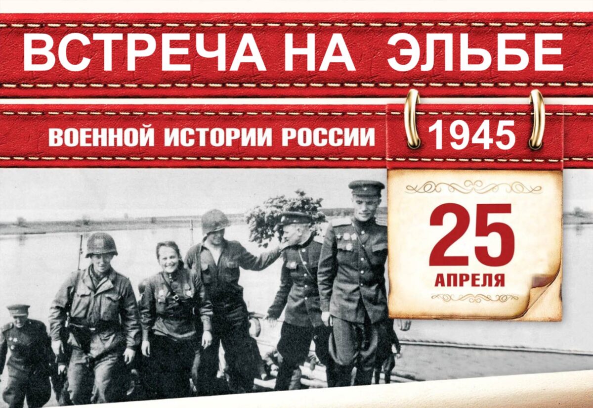 Любительский снимок; стоят два солдата, Их руки в пожатии крепком слились… Далёк тот апрель, встречи в том, сорок пятом… И жаль… Те надежды на мир, – не сбылись! 📖 Владимир Усольцев 📖 25 апреля 1945 года недалеко от города Торгау на реке Эльба войска 1-го Украинского фронта армии СССР встретились с войсками 1-й армии США в ходе Шпремберг-Торгауской наступательной операции. Первая встреча состоялась, когда американский патруль под командованием первого лейтенанта Альберта Коцебу пересёк Эльбу. На восточном берегу они встретили советских солдат под командованием подполковника Александра Гордеева. В тот же день ещё один американский патруль (под командованием второго лейтенанта Армии США Уильяма Робертсона) встретился с советскими солдатами лейтенанта Александра Сильвашко на разрушенном мосту через Эльбу близ Торгау. В результате встречи войск союзников остатки вооружённых сил Германии были расколоты на две части — северную и южную. 27 апреля в 18:00 союзники официально объявили об исто