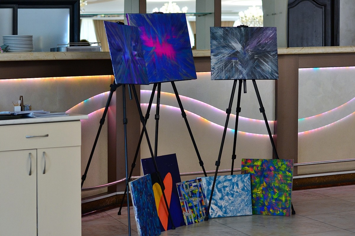 В этом году в Симферополе появилась новая творческая традиция - проведение Крымской ярмарки брендов в ресторане "Чистые пруды" у самого красивого городского парка имени Юрия Гагарина. Первое мероприятие прошло 9 марта. Об этом есть мой репортаж на канале, ссылка будет в конце. И вот уже 20 апреля в Чистых прудах прошла вторая ярмарка. Если в марте были основными модные показы, то Пасхальное мероприятие было более разнообразным, и сейчас я всё расскажу и покажу. Союз фактурных художников Крыма представил новые работы. Это полотна Марии Васильевой, Ирины Гладышевой, Олега Горбунова, Оксаны Дистеровой, Юлии Караматовой, Нины Масловой, Виктории Тихоновой и Марии Удовиченко. Цены от 1000 до 8000 рублей. За столиками мастерицы из Симферополя и Ялты показывали, что они умеют и предлагают. Елена Журавлёва рекламировала ткани, Нияра Меметова ювелирные украшения, Александра Нежнова (Афро Саша) африканские косички и так далее. Фотограф Александр Кадников приготовил перфоманс выставку у фонтана у