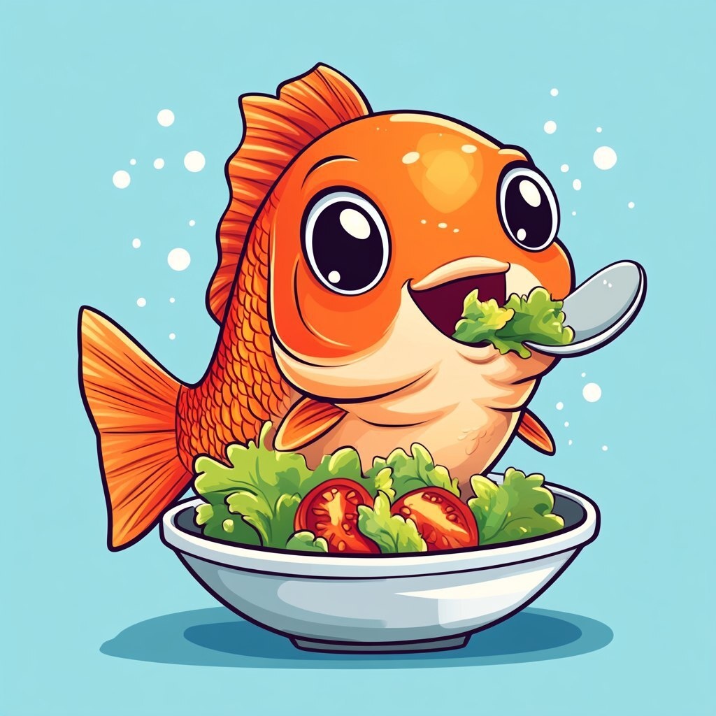 Создано на основе запроса: The crucian carp is very fat and eats salad with a spoon. vector graphics cute and cheerful, cartoon style --- Автоперевод: Круцианский карп очень толстый и ест салат с ложкой. Как тебе эта генерация? 🤔 https://dzen.ru/id/65c0c65c86e4f837c27b24d7 #ИИ #AI #нейросеть #midjourney #art
