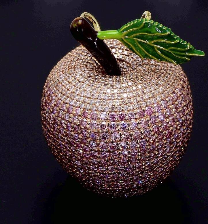 Соблазн в чистом виде — кулон в форме яблока, усыпанный розовыми бриллиантами