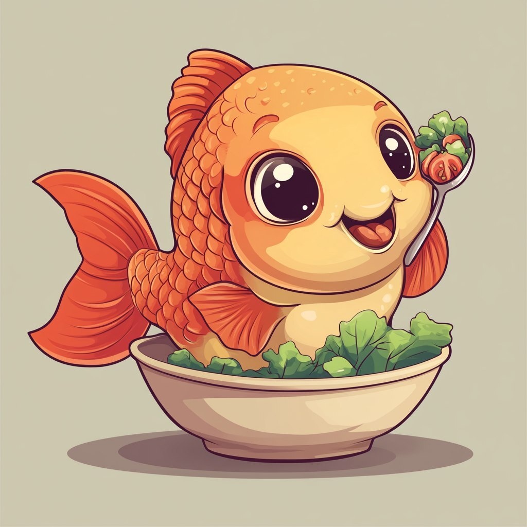 Создано на основе запроса: The crucian carp is very fat . he is sitting on hos tail and eats salad with a spoon. vector graphics cute and cheerful, natural proportions, cartoon style --- Автоперевод: Круциан карп очень толстый. Неплохо выглядит? 🤔 https://dzen.ru/id/65c0c65c86e4f837c27b24d7 #ИИ #AI #нейросеть #midjourney #art