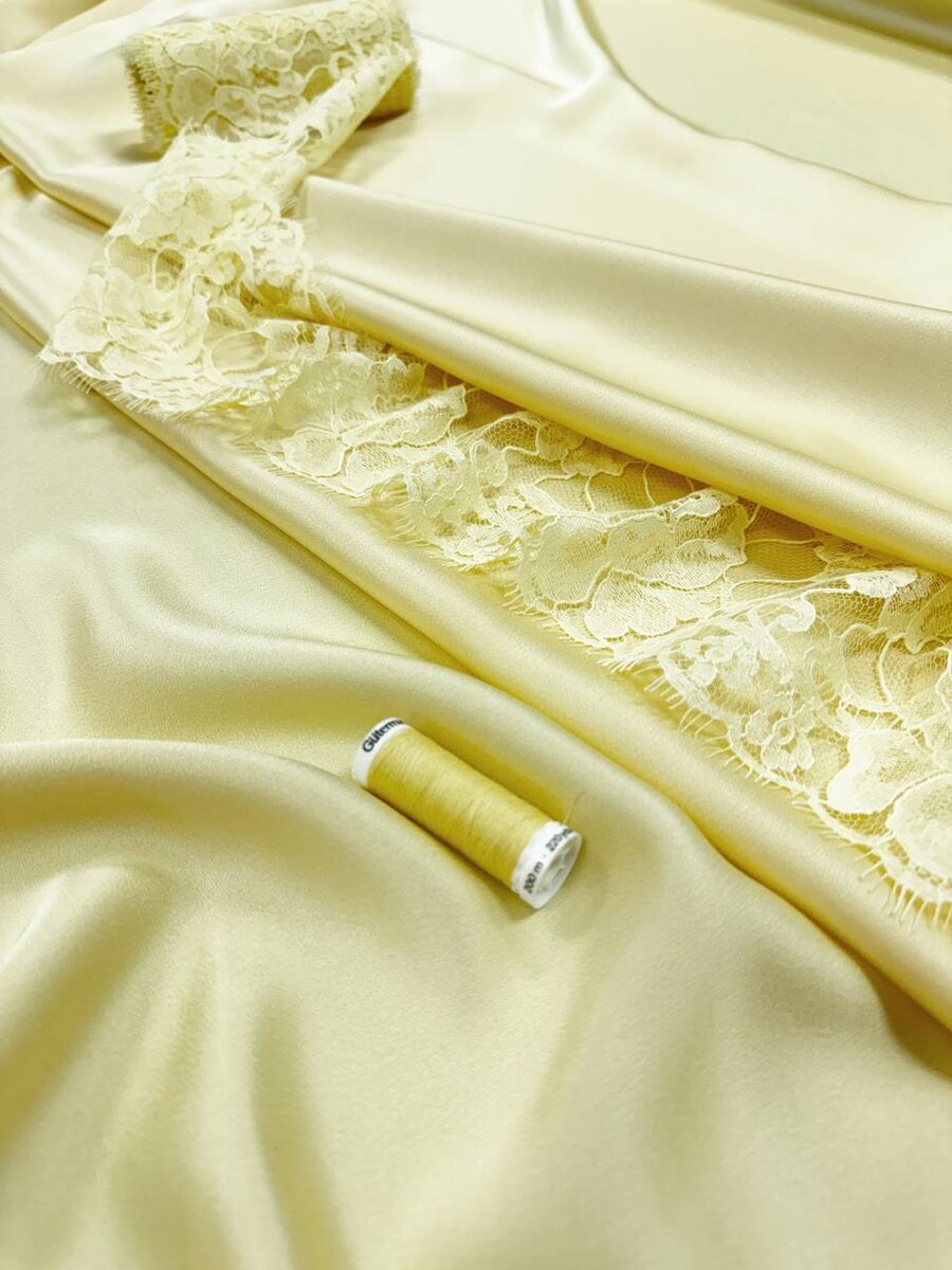 Очень красивый, нежный желтый оттенок. Отдан сторона матовая, другая с сатиновым лоском. Хорошая альтернатива плотному, тяжелому шелку. Отличный вариант для пошива платья, юбки, блузы, рубашки, комбинезона, костюма свободного кроя, кимоно. Ширина: 1м 35 см. Состав: вискоза 45%, ацетат 55% Для вопросов и заказа пишите пожалуйста по этой ссылке: Ждём Вас ежедневно, с 10:00 до 20:00, по адресу: г.Москва, ул Мневники, д.6, п.6
