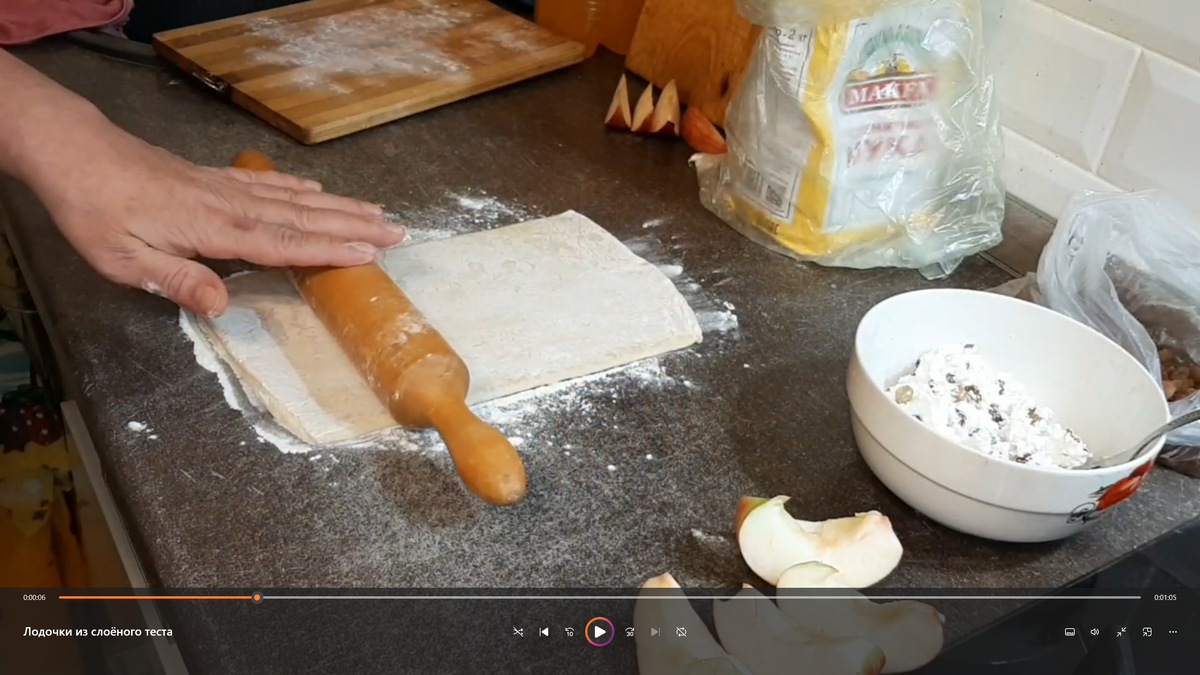 1 лист слоёного теста 1 яблоко очистить кожицу и порезать на четвертинки 200 граммов творожной массы100 грамм изюма смешать с массой и добавить яйцо, сделать лодочки с яблоком и вложить туда творожную массу с изюмом и запекать в духовке 180 градусов на 20 минут. Готово ! Приятного чаепития!!! Лайкни и подпишись !!!