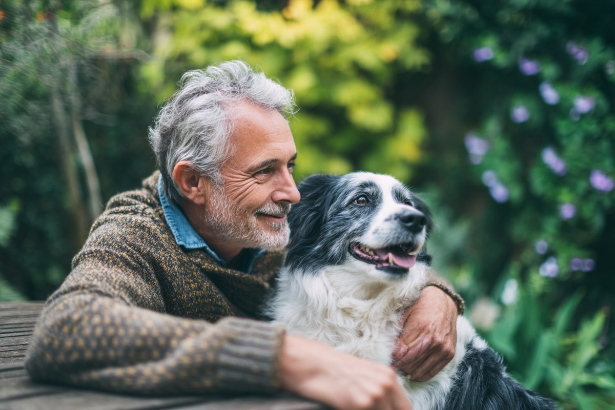 Создано на основе запроса: Explore Top Pet Insurance Options in Australia, senior with dog, happy senior and happy dog, zoom on sernio with