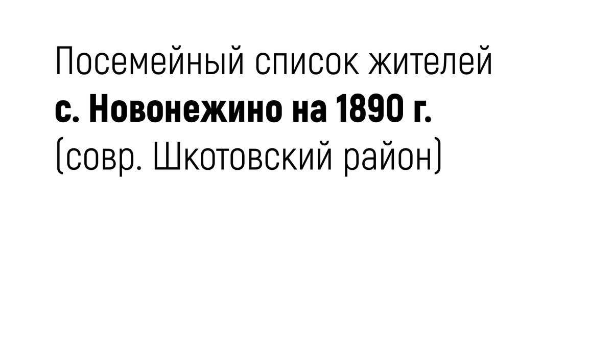 Ниже привожу посемейный список жителей с. Новонежино на 1890 год (современный Шкотовский район) с указанием ФИО главы семьи и его возраста.