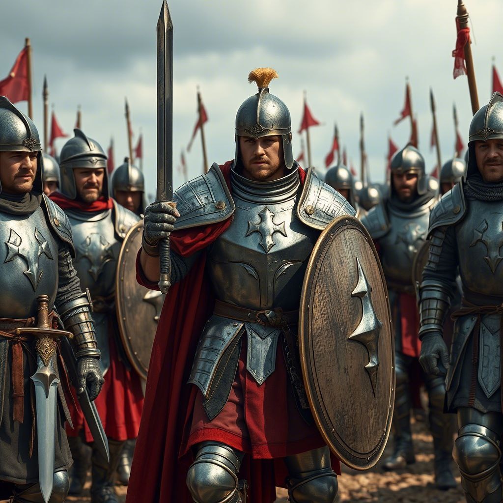 Готовясь к завтрашнему дню, мне помогали с амуницией солдаты — дали меч, латы, щит, кинжал. Примерив, понял, из-за чего наши воины не выживают. — "Движения скованы, неудобно и неуклюже двигаюсь. И с этим вы хотите, чтобы я сражался?" — сказал про себя. "Ну ладно, уж попробуем." Полное обмундирование было тяжёлым — с каждым шагом становилось всё тяжелее и тяжелее. Я твердил себе: "Я справлюсь. Как и мой отец — на службе короля уже 30 лет. Думаю, эти тренировки для него — пустяки." Сложив всё рядом со своей койкой, все смотрели на меня с гордостью и радостью, что берут не их. Наутро я надел на себя латы и начал тренироваться. Вес был внушительный — тело не сразу начало к нему привыкать. Было весело из учать своё тело в разных условиях. Проходил день за днём — привык уже к амуниции. Наконец настал день. Ранним утром я уже не спал. Ко мне пришли солдаты будить — они были удивлены, что я уже собранный и жду их. Они усмехнулись: — "Что, страшно? Не спал всю ночь, наверное? Ничего, привыкнешь