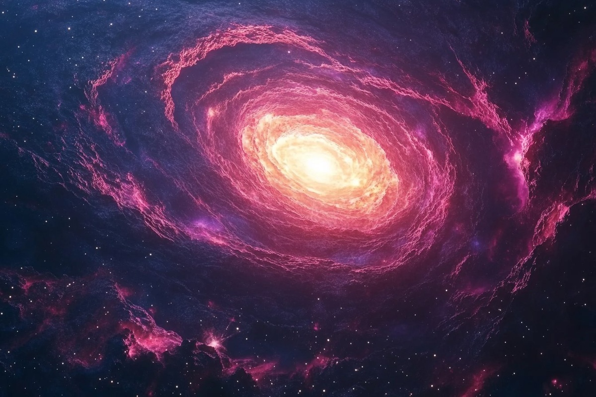 Создано на основе запроса: a vivid spiral galaxy with glowing center, neon pink, deep blue, cosmic clouds and stars, epic space colors
