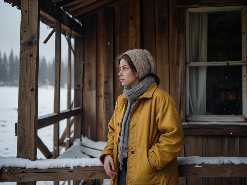 Ветер трепал подол старого платья Ани, когда она, закутавшись в шаль, стояла на крыльце полуразрушенной избы. Деревня, казалось, вымерла. Редкие огоньки в окнах выдавали признаки жизни, но даже лай собак, обычно такой звонкий и назойливый, затих. Аня смотрела на заснеженное поле, сливающееся с серым небом, и чувствовала, как тоска ледяной хваткой сжимает ее сердце.