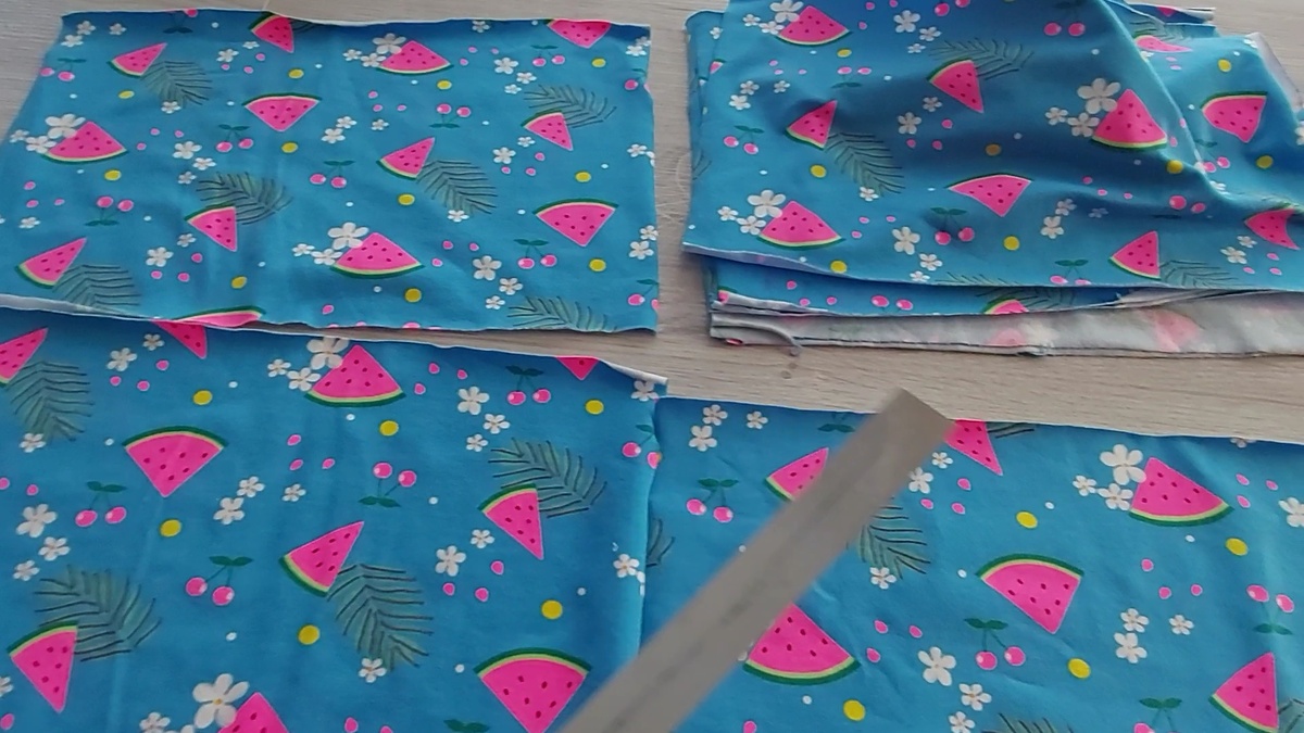 Всем весенний привет! Погода стоит прекрасная, и хочется побольше быть на улице , в своём саду , слушать как оживает лес , воздух наполняется ароматом цветущих садов, запахом сирени. Но, вечер остаётся свободным, и я не отказываю себе в удовольствии ,посидеть за швейной машинкой! Мне принесли небольшие кусочки трикотажа, отдали, сказали:" Жалко использовать эти яркие кусочки как тряпочки для уборки. Возьми себе, может сошьешь себе красивые прихватки! " Сколько надо в доме прихваток ? Поэтому в этот раз, вполне обойдусь! Кусочки были небольшим размером, но они все были одинаковые . Немного обрезала край фигурными ножницами с одной стороны , затем брала два кусочка, складывала их лицевой стороной друг к другу, и по лицевой стороне , сшивала два кусочка . Шов стачивания кусочков , должен быть на лицевой стороне! Затем , припуски на швы стачивания, разложила, и по центру шва, по лицевой стороне , ещё раз прострочила, тем самым закрепила