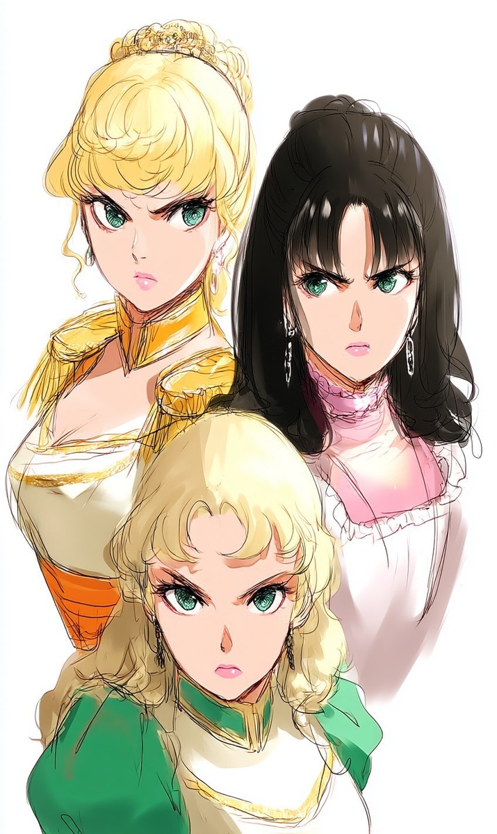 Создано на основе запроса: rose of versailles, there's a love triangle, shojo villainess revenge manga, tempest of emotion, anime style