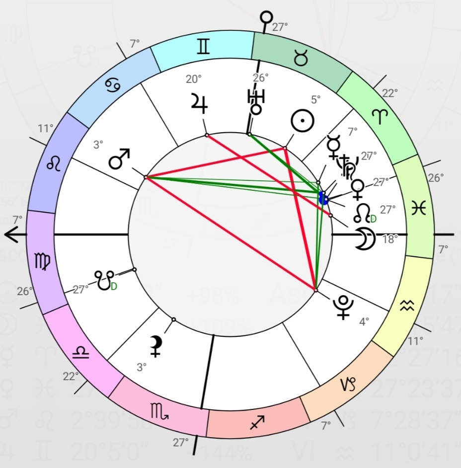 Венера в Рыбах в соединении с Сатурном, Северным узлом и Луной