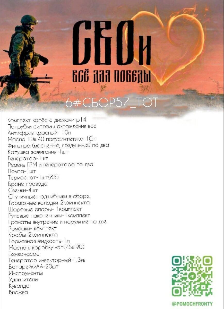 ⚡️СБОР для Адама (Разведка БПЛА) После того как враги разнесли их позицию, большую часть дорогого оборудования парни купили сами. С остальным - просят помочь СВОих. Пострадал ноут для работы и прошивки для Мавиков. ( ранее переданный ноут у расчета фпв) 3. Лопасти на Мавик 5компл *3176= 15880 https://ozon.ru/t/DLrsfib 6. Старлинк 3в - 49813 https://ozon.ru/t/WfSKYnW 7. Ноут 49 012 ( включая таможенный платеж) https://ozon.ru/t/tehZyVd Батарейки, лопасти , сбросники - быстро изнашиваются. Так как палет у птиц колоссальный. Села - батарееку поменяли и тут же полетела. И так 24/7 ❗️Сумма сбора : 188 545 114 705 🔥 Помочь СВОим ФРОНТ Т-Банк: 2200701225452439 Тел. для перевода по СБП (Т-Банк): 89936125765 Юлия Ф./Иван П. 🇷🇺У БОГА НЕТ ДРУГИХ РУК, КРОМЕ НАШИХ 🇷🇺