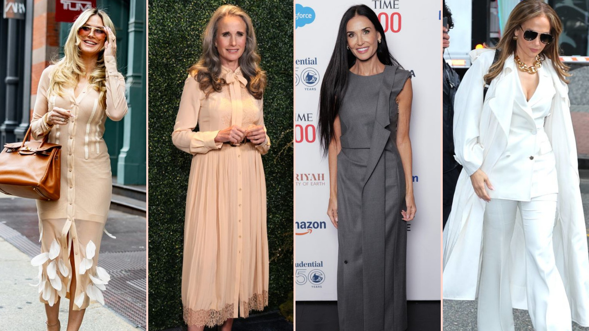 Актриса Ева Лонгория показала, как носить блестки в повседневной жизни, когда была замечена возле студии NBC Studios в Нью-Йорке. На премьере фильма Кейтлин Девер была одета в белое кружевное платье без бретелек от Rodarte, дополненное украшениями Tiffany & Co. Мишель Уильямс вышла в свет в Нью-Йорке в черно-белом платье и кожаных сапогах выше колена от Chloé. Ана де Армас посетила CinemaCon в Лас-Вегасе в костюме в полоску с кристаллами от Louis Vuitton и туфлях на каблуках из лакированной черной кожи. Кэти Холмс была замечена в Нью-Йорке в полном образе от Brunello Cucinelli: полосатая рубашка, белый блейзер, брюки с широкими штанинами и сумка Duo tote. Сидни Суини посетила CinemaCon в Лас-Вегасе в атласном корсетном платье Wiederhoeft цвета слоновой кости и туфлях на каблуках Jimmy Choo. Аманда Сейфрид была одета в белую кружевную блузку и тартановую мини-юбку от Ashish с черными туфлями на каблуках. Дженна Ортега выбрала цветочную рубашку с лавандовыми шортами и туфлями на
