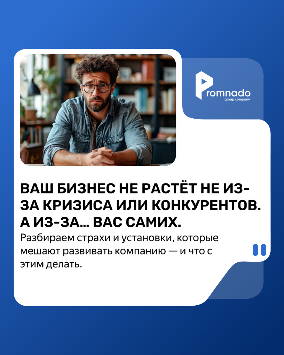 🧠 Часто рост бизнеса тормозит не рынок, не конкуренты и даже не бюджет. А наши собственные установки. В этом посте — 3 распространённых убеждения, которые мешают компании развиваться, и что с ними делать. Узнаёте себя? Значит, пора делегировать и выходить из замкнутого круга. Чтобы упростить первый шаг — скачайте таблицу для делегирования в нашем Telegram-канале https://t.me/promnado. Ссылка в шапке профиля. Это бесплатно и очень полезно.