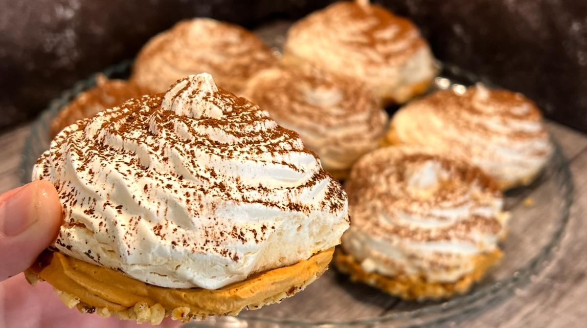 «Мадам Фу Фу» - название звучит как капризная дама в кружевах, правда? А на самом деле — это идеальный десерт, если после куличей у вас остались яичные белки и не хочется, чтобы они скучали в холодильнике. Просто, изысканно и очень вкусно! Шикарное тбилисское печенье - пирожное с хрустящим безе, насыщенным кремом и грецкими орехами. 1.Готовим безе. К яичным белкам добавить соль 2.Взбить до пены 3.Постепенно добавить сахар и взбить до устойчивых пиков, примерно 10 минут 4.Добавить ванильный сахар 5.Лимонный сок 6.Кукурузный крахмал 7.Должна получиться устойчивая масса 8.Переложить в кондитерский мешок с насадкой 9.Отсадить безе в форме конуса. Начиная с круга большего диаметра, постепенно уменьшая диаметр к вершине. Внутри при выпекании должна образоваться пустая полость. 10.Посыпать какао 11.Сушить при t 110* 2-2,5 часа. Время и температура могут отличаться в зависимости от вашей духовки. Готовое безе должно быть абсолютно сухим и с лёгкостью отходить от пергамента. Внутри