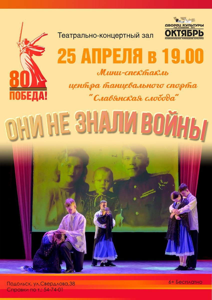 ✨ Концерт Центра танцевального спорта "Славянская слобода" ✴️Коллектив бального танца подготовил для зрителя два отделения. 👯 В первом отделении будут представлены лучшие номера Центра танцевального спорта. 🪖Во втором отделении - мини-спектакль “Они не знали войны" - события июня 1941 года языком бального танца. 🚫 Возраст: 6+ 📆 25.04.2025 🕒 19:00 🏢 Дворец культуры «Октябрь» 📍 г. Подольск, ул. Свердлова, д.38 💰 Вход свободный❗️ #webПодольск ✅ Мероприятия Подольск https://dzen.ru/id/66ed500f7b5671493eca3fd6 http://vk.com/podolsk_events http://dzen.ru/podolsk_events