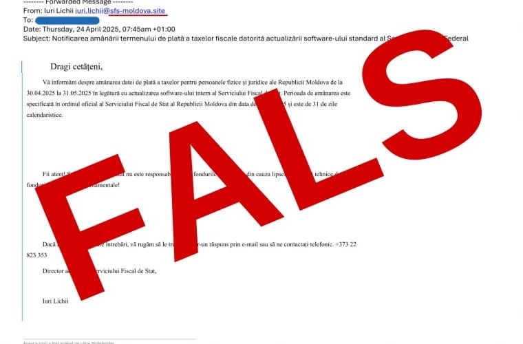 ⚡️🇲🇩Внимание, фейк! Государственная налоговая служба сообщает о распространении в публичном пространстве якобы изданного директором учреждения Ольгой Голбан приказа об изменении срока подачи физическими лицами декларации о доходах за 2024 год. Также этот документ рассылается на электронные адреса многих налогоплательщиков от имени заместителя директора Юрия Ликия, при этом используется поддельный адрес электронной почты. ☝️😐Будьте бдительны! @eNewsmd.online 👈 Подписывайтесь на наш канал