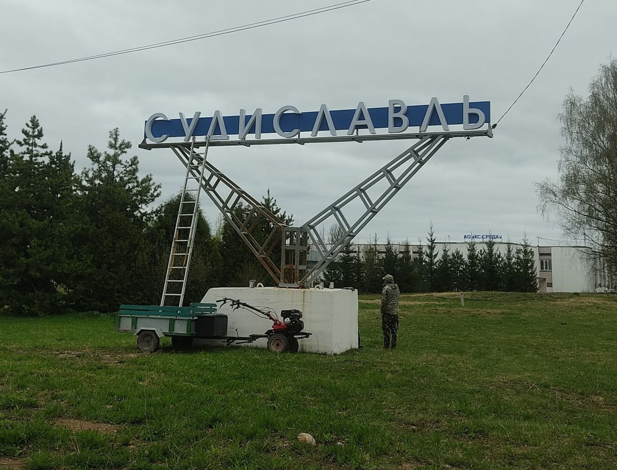 Весеннее преображение поселка продолжается! Сегодня покрасили Стеллу на въезде в Судиславль!