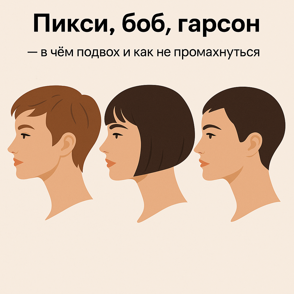 Хочется перемен? Самое простое сменить прическу. А если быть точнее отрезать всё лишнее и сделать короткую стрижку. Но тут начинается путаница: пикси, боб, гарсон... Что это вообще такое? Чем они отличаются и кому они реально идут? Собрала всё в одну статью, как если бы рассказывала подруге без заумностей и салонного пафоса. Поехали! Пикси это коротко сбитая по бокам и сзади стрижка, а сверху чуть подлиннее. Немного хаоса, немного стиля и вот ты уже как героиня французского кино. 📍 Подходит: миниатюрным девушкам с аккуратными чертами.