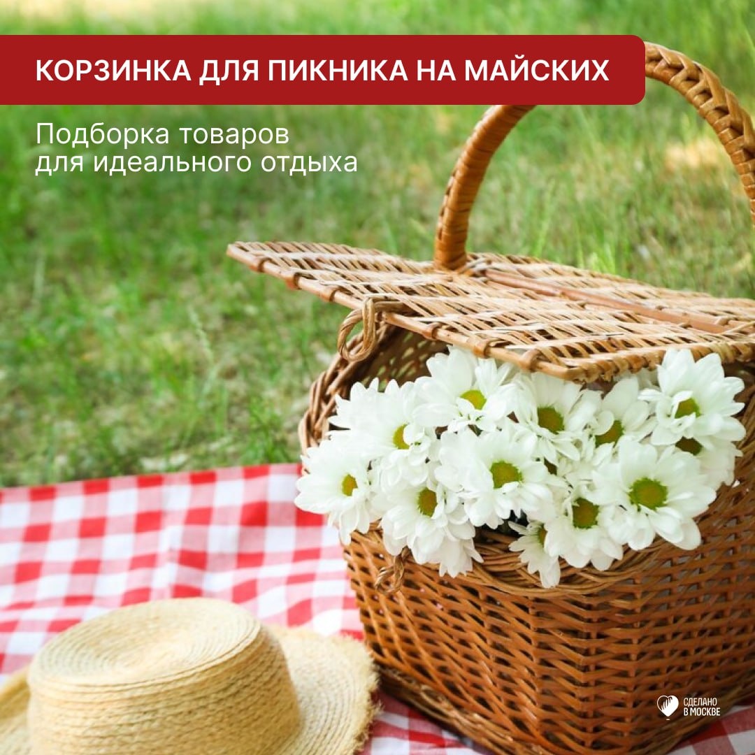 Корзинка для пикника на майские: 5 вещей для идеального отдыха Майские праздники — лучшее время для пикников! Собрали для вас подборку вещей, которые сделают ваш отдых на природе комфортным и стильным. Футболка White Crow Кепка BASK Крем SPF Roz Mary Коврик Ramayoga Лимонад WILDSODA Выбирайте, собирайте корзинку — и встречайте тёплые деньки с удовольствием! 🌿