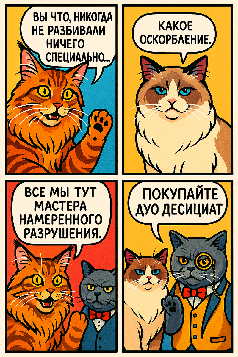И в этом моменте кот ощущает себя… художником. Когда кот сбрасывает кружку, он проверяет границы дозволенного.