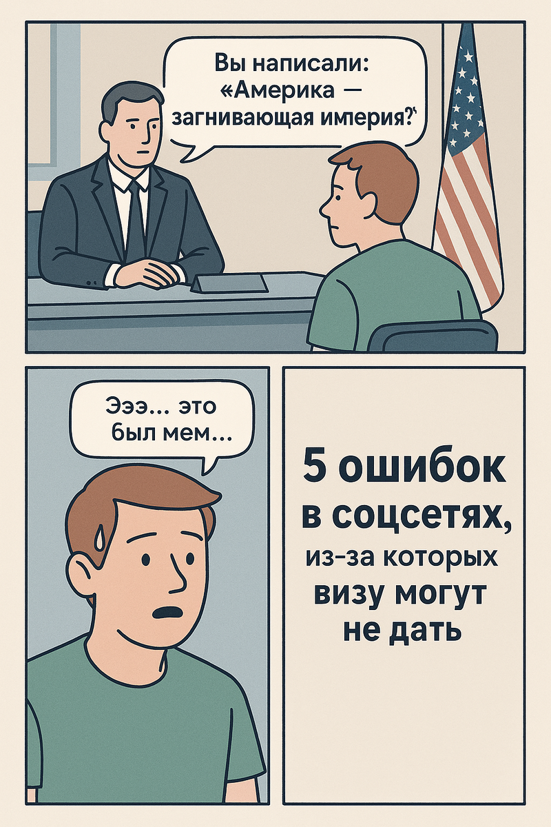 При подаче на визу в США вам обязательно нужно указать свои социальные сети. И это далеко не формальность. Консулы действительно обращают внимание на то, что и как вы публикуете. Более того, внимание к соцсетям только растёт. Например, в апреле 2025 года власти США заявили, что будут специально проверять аккаунты иммигрантов и визовых заявителей на признаки антисемитской активности. Это подчёркивает, насколько серьёзно они относятся к тому, что человек пишет и лайкает в интернете. Вот что именно могут просматривать и почему это важно: 1. Посты с политическим контекстом — "Америка — загнивающая империя, никогда туда не поеду!" (и вдруг — туристическая виза) — Репосты с агрессивным контентом или высказываниями против определённых стран или национальностей Такие публикации могут восприниматься как угроза безопасности или как сигнал о нестабильности. Даже если вы шутите, в другой культуре это может быть понято по-другому. 2. Несоответствия в информации — В анкете вы указали, что раб