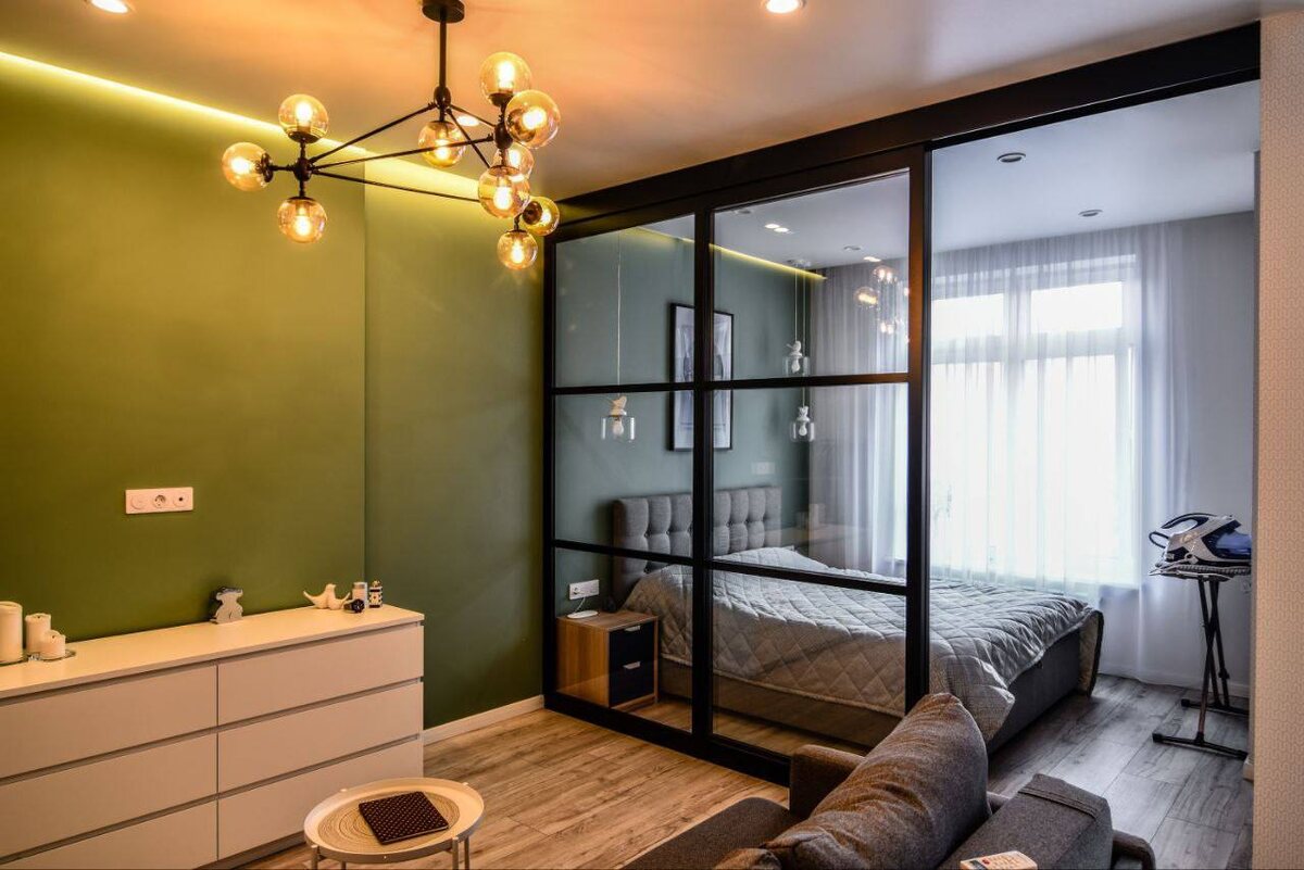Его фишка❓Раздвижная перегородка в спальне! ✨ Павел выбрал перегородку с прозрачным стеклом, отделил кровать от зоны для стримов и кодинга.