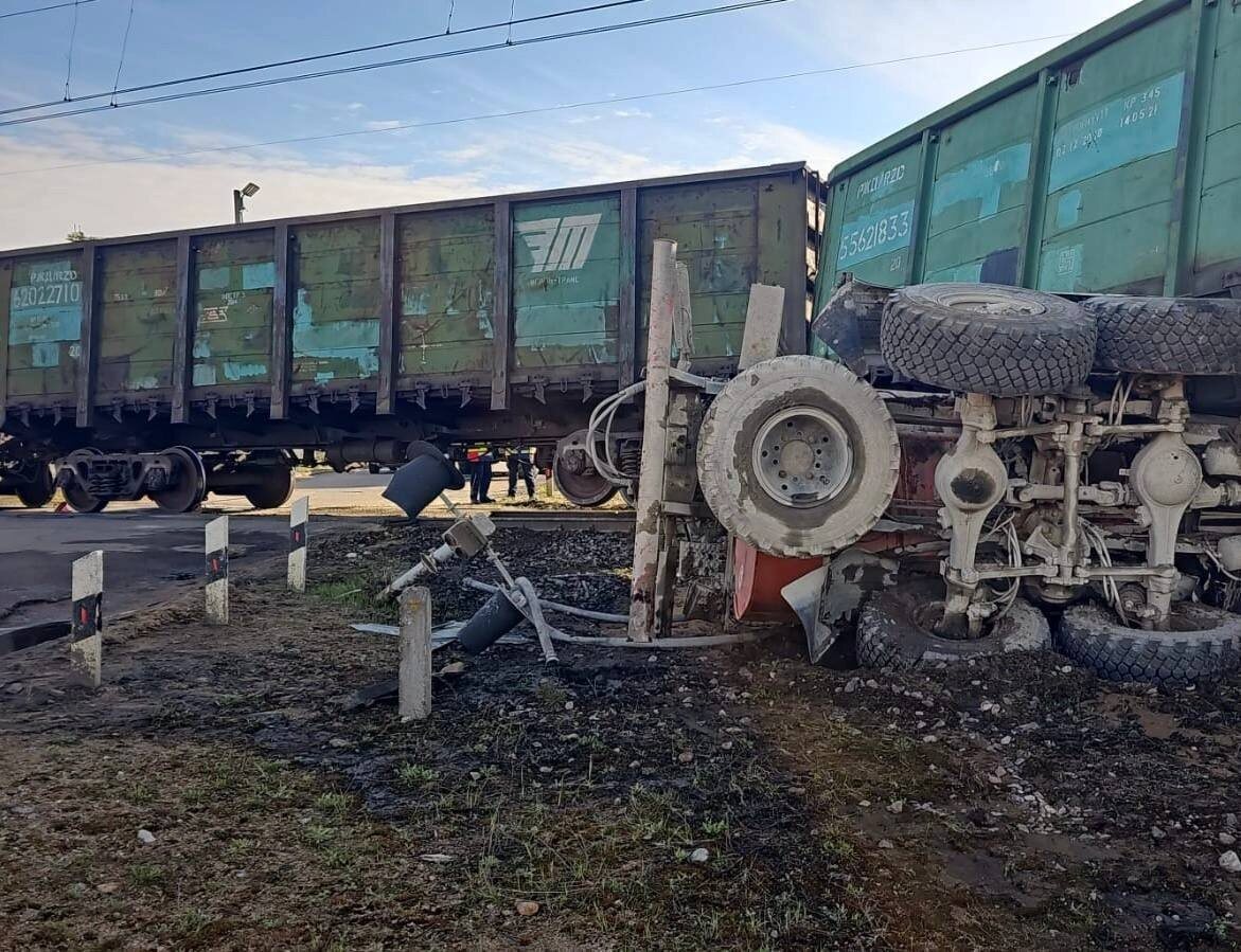 Тепловоз разворотил самосвал, выехавший на запрещающий сигнал