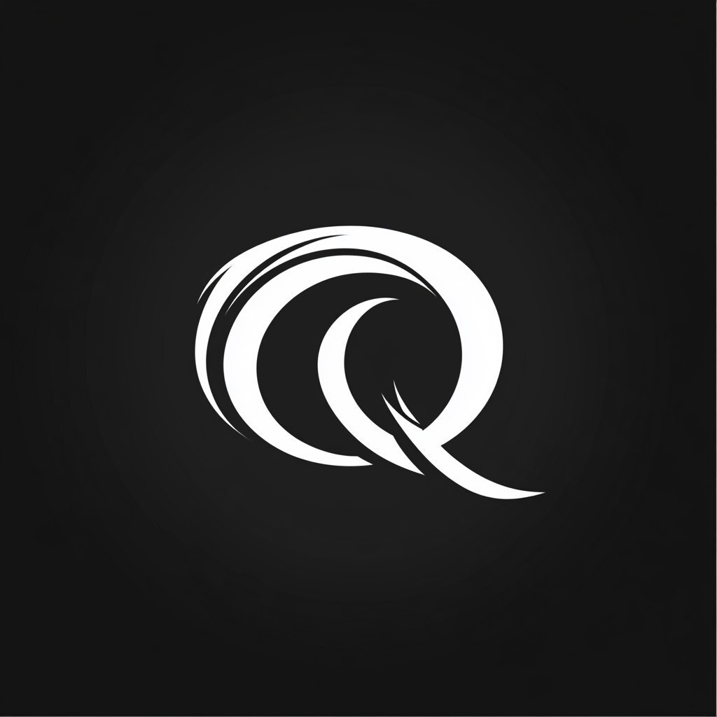 Создано на основе запроса: company logo, white font; fancy capital letter Q, transitioning into wind